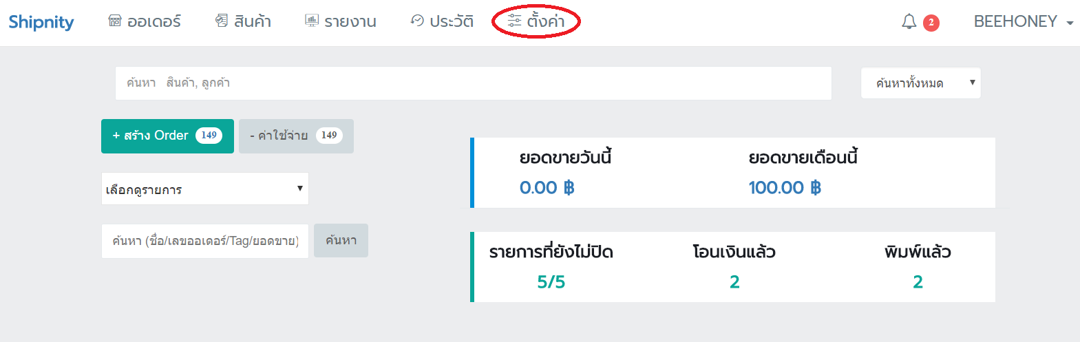1. ไปที่หน้า ตั้งค่า