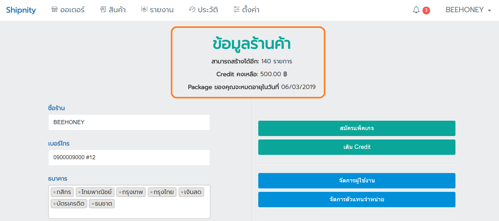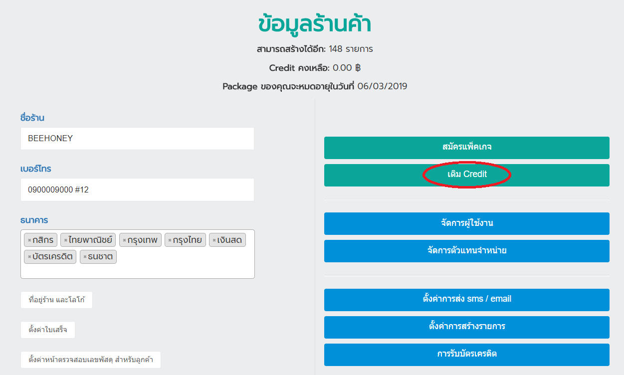 4. ดูเครดิคคงเหลือจากข้อมูลร้านค้า