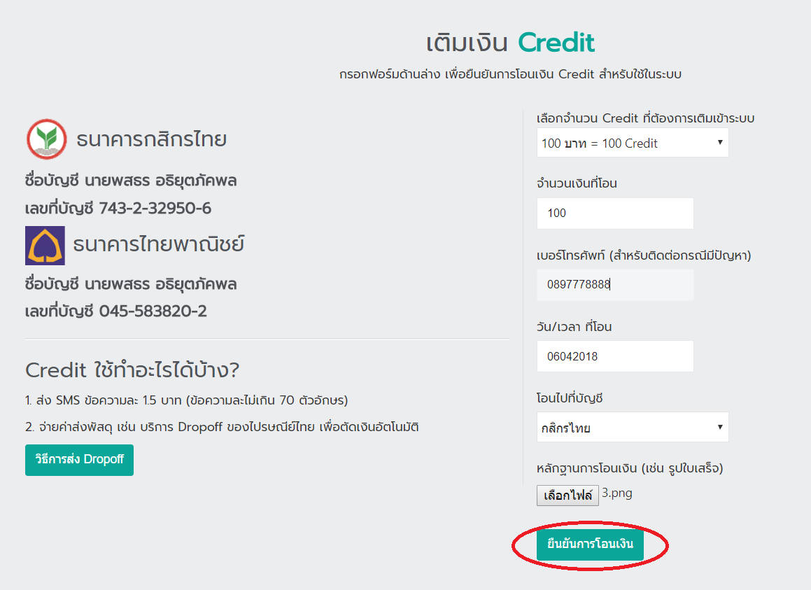 3. ใส่ข้อมูลและอัพโหลดหลักฐานการโอนเงินหรือสลิป