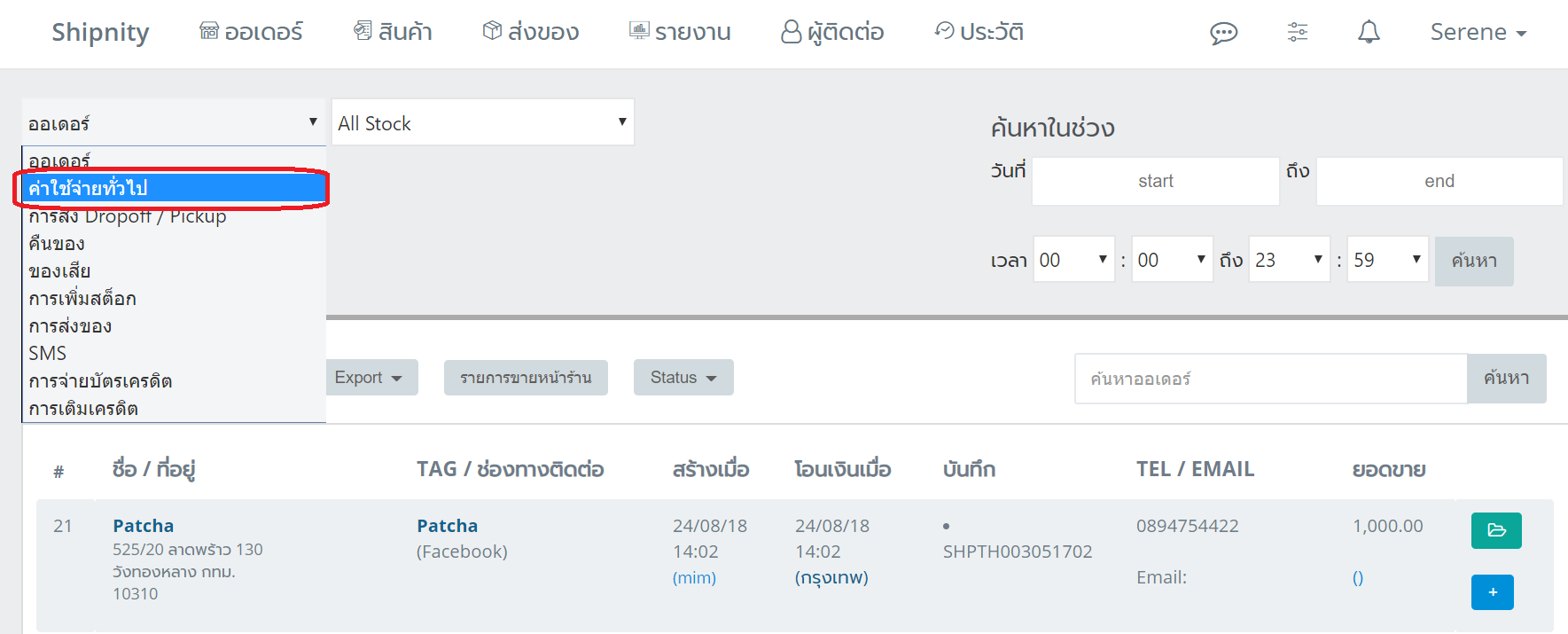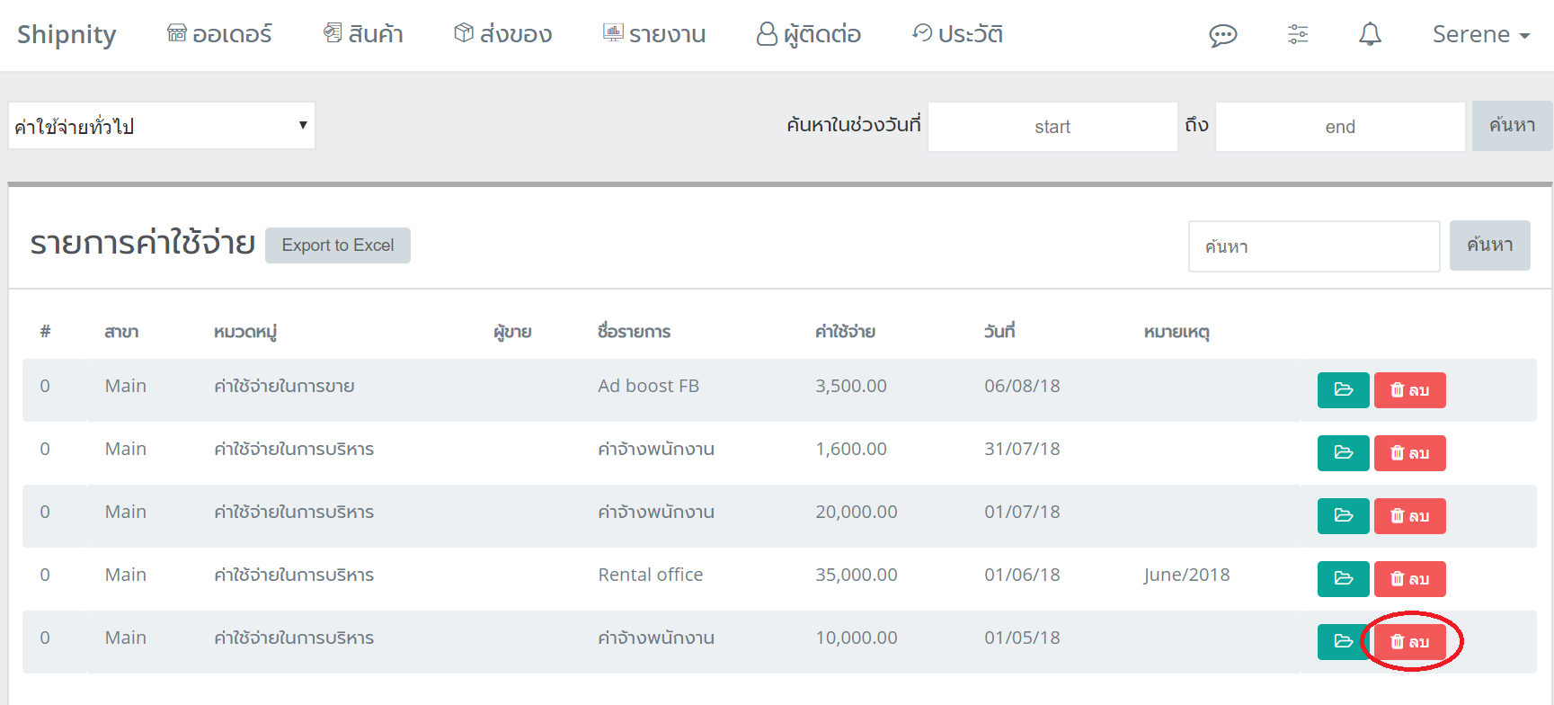 ลบค่าใช้จ่าย 1. ไปที่หน้า ประวัติ 2. เลือก ค่าใช้จ่ายทั่วไป 3. เลือกค่าใช้จ่ายที่ต้องการลบ แล้วคลิกเครื่องหมาย ลบ จำนวนผู้ชม: 551 Read more articles Previous Postสินค้าชำรุด Next Postเพิ่ม / ตั้งค่าตัวแทนจำหน่าย You Might Also Like วิธีแยกหัวบิลตามเพจ June 19, 2020 การสมัคร SCG แบบเก็บเงินปลายทาง (SCG COD) January 14, 2021 การเชื่อม Shopee และ Lazada หลายร้าน ตัดสต็อกที่เดียวกัน January 31, 2023