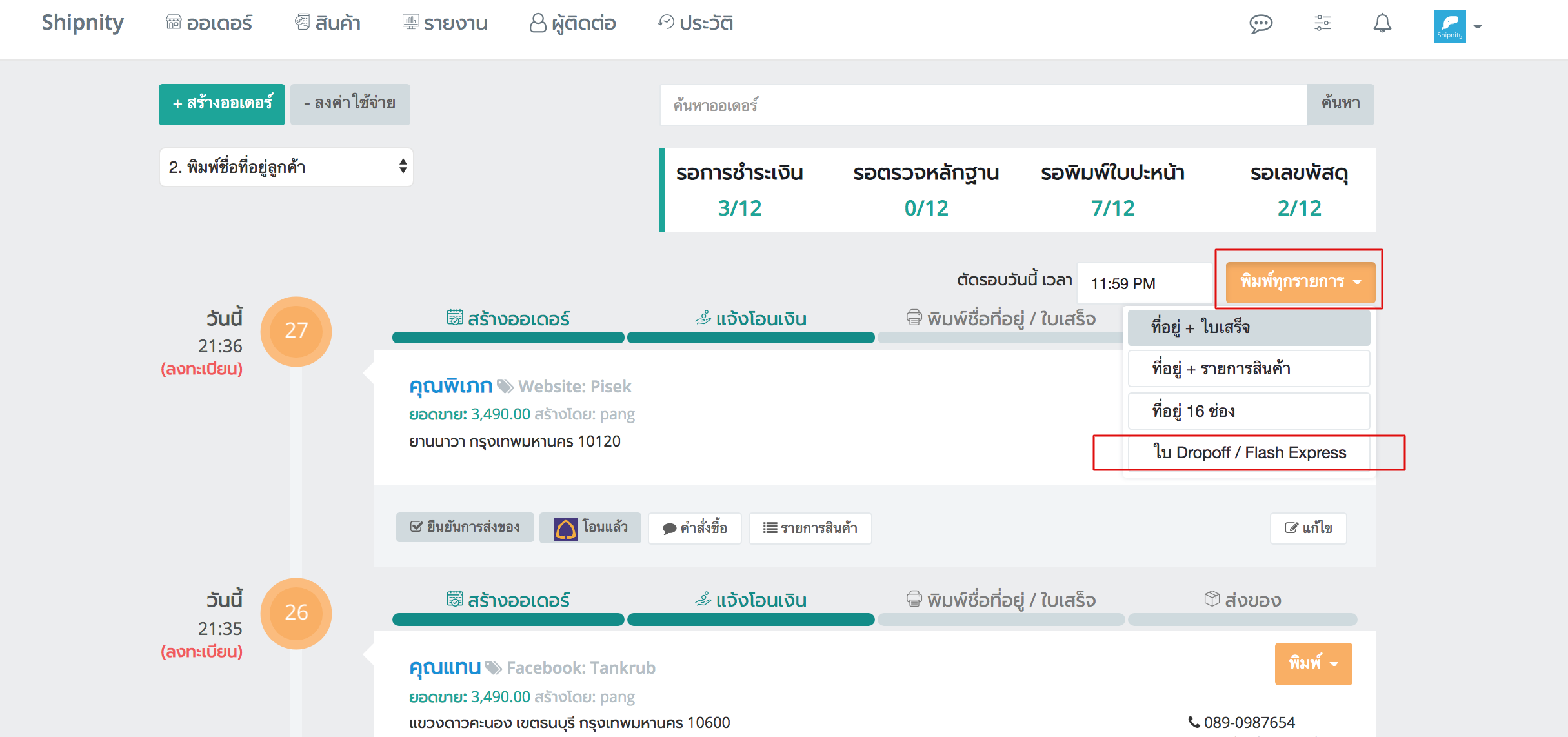 จากนั้น เลือกปริ้นใบ Drop off / Flash Express